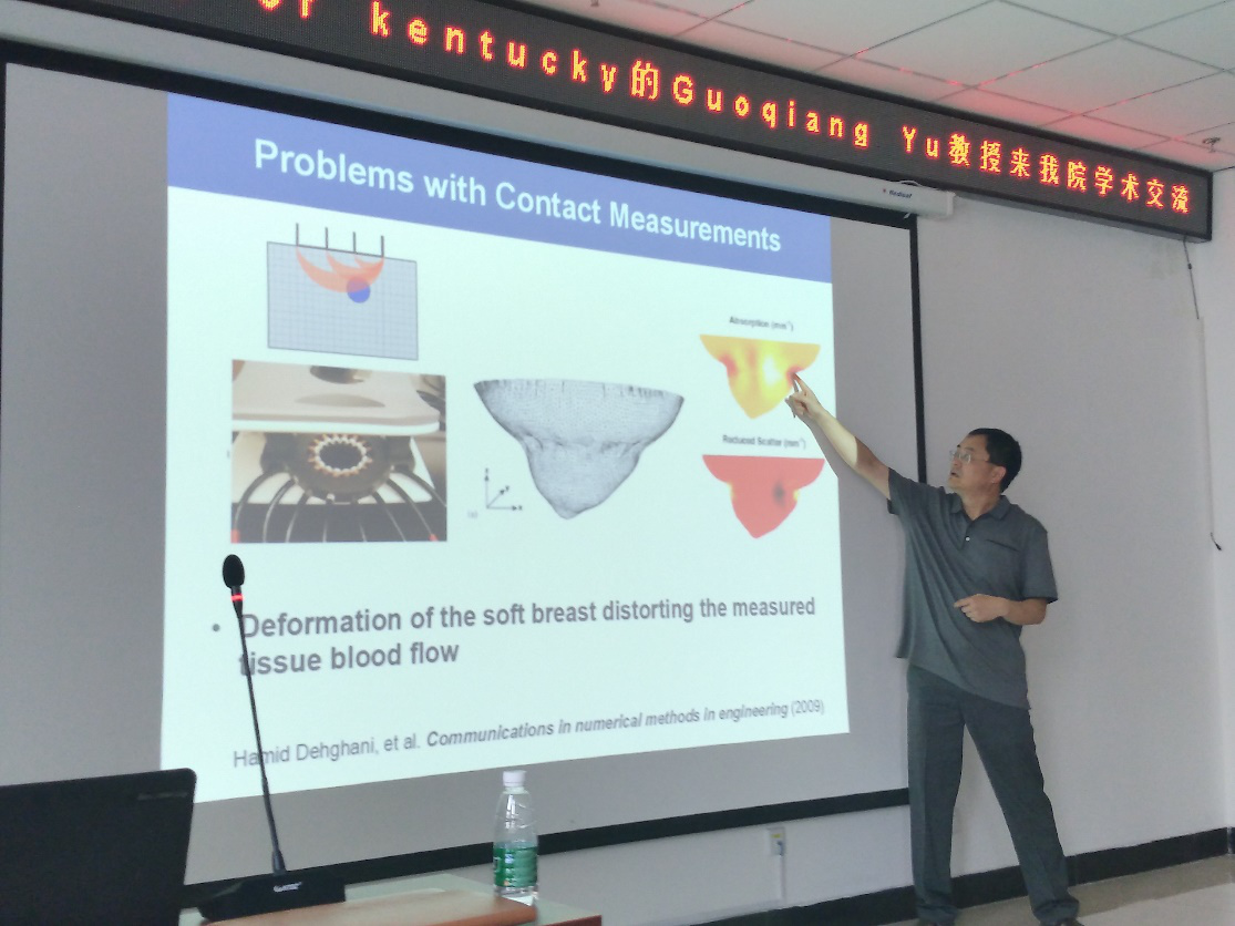2018720上午9点,美国肯塔基大学终身教授、国际著名的生物医学工程专家Guoqiang Yu应中北大学生物医学成像与影像大数据山西省重点实验室的邀请,来禁漫 进行了学术交流,并在学院715学术报告厅做了非接触式近红外漫射光散斑组织血流成像技术学术报告