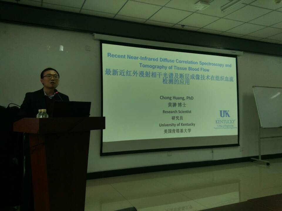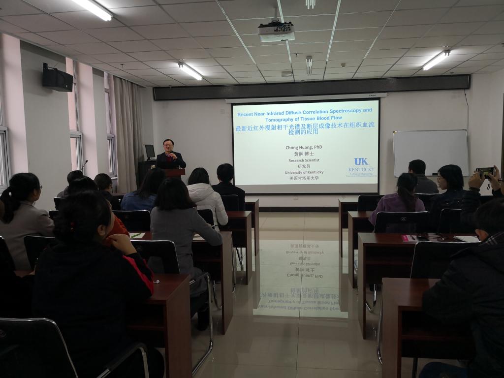 2018年11月14日下午3:30,美国肯塔基大学研究员黄翀博士应中北大学生物医学成像与影像大数据山西省重点实验室的邀请,来禁漫 进行了学术交流,并在学院715学术报告厅做了“近红外漫射相干光谱及断层成像技术在组织血流检测的最新进展”的学术报告。