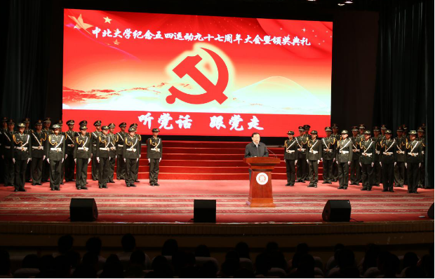 5月4日,中北大学举办了纪念五四运动九十七周年大会暨颁奖典礼来纪念这个伟大的日子。97年前,为了驱逐黑暗争取光明,为了祖国的独立富强,一群意气风发的年轻人用热血和生命谱写了一曲壮丽的青春之歌,绘就了一幅最宏伟的青春图画。今天,中北学子们秉承五四精神,紧追时代步伐,主动践行社会主义核心价值观,昂首向前,为实现中国梦注入新动力。