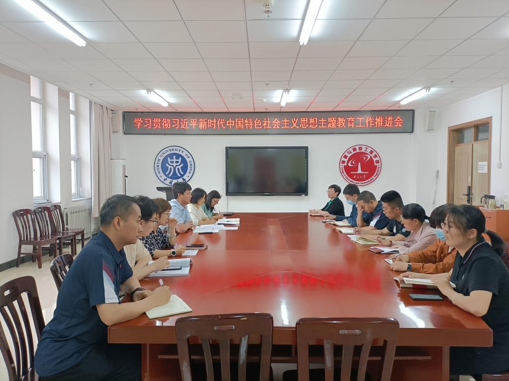 党委在科学楼B座713会议室召开学习贯彻习近平新时代中国特色社会主义思想主题教育工作推进会,学院党委书记曹凤才主持会议,各党支部书记、科室负责人参会。