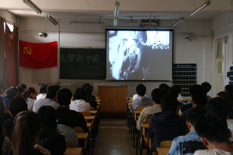 与此同时,部分入党积极分子齐聚10505教室,一起观看《地道战》,共同感受战争年代人民群众的力量,感受劳苦大众的智慧。观影结束后,同学们热血沸腾,斗志昂扬,部分同学上台分享了自己的感受。