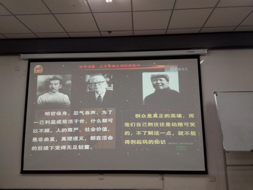 视频制作图文并茂,金教授讲得声情并茂,观看的时候,全体党员聚精会神,或因列强的轻视而气愤,或因麻木无知的普通民众而悲哀,或因背叛了理想信念、丢弃了礼义廉耻的文人政客而愤慨,更因那些为了民族大业而奋勇前进的伟人伟业而敬佩。中国近代的沧桑巨变在眼前慢慢展开,历史长河中,我们感受到了共产党人的骨气和中国民族精神的光辉。