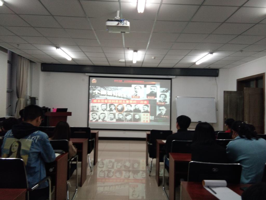党委组织全体党员在院楼715会议室集中观看国防大学战略研究部教授金一南少将所作的题为《百年沧桑——从东亚病夫到民族复兴》的讲座视频。