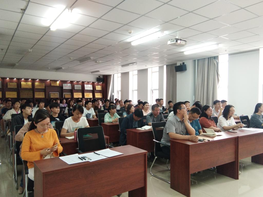 2021年5月25日下午,在科学楼B座715报告厅,校党史学习教育宣讲团成员、学院党委书记曹凤才为全院师生党员上了一堂生动的党史学习教育专题党课--党的百年光辉历程。全体党支部书记和师生党员代表参加了学习。