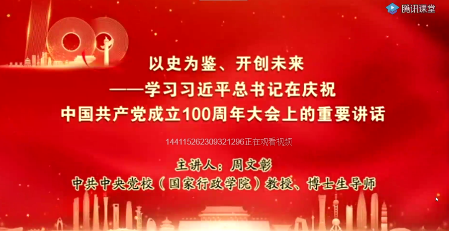 为继续推进党史学习教育深入开展,进一步引导广大党员干部加深对“七一”重要讲话精神的深刻理解和领会,823-9月2日学院党委组织全体师生党员利用腾讯课堂开展学习习近平总书记“七一”重要讲话精神三场线上专家视频辅导讲座。