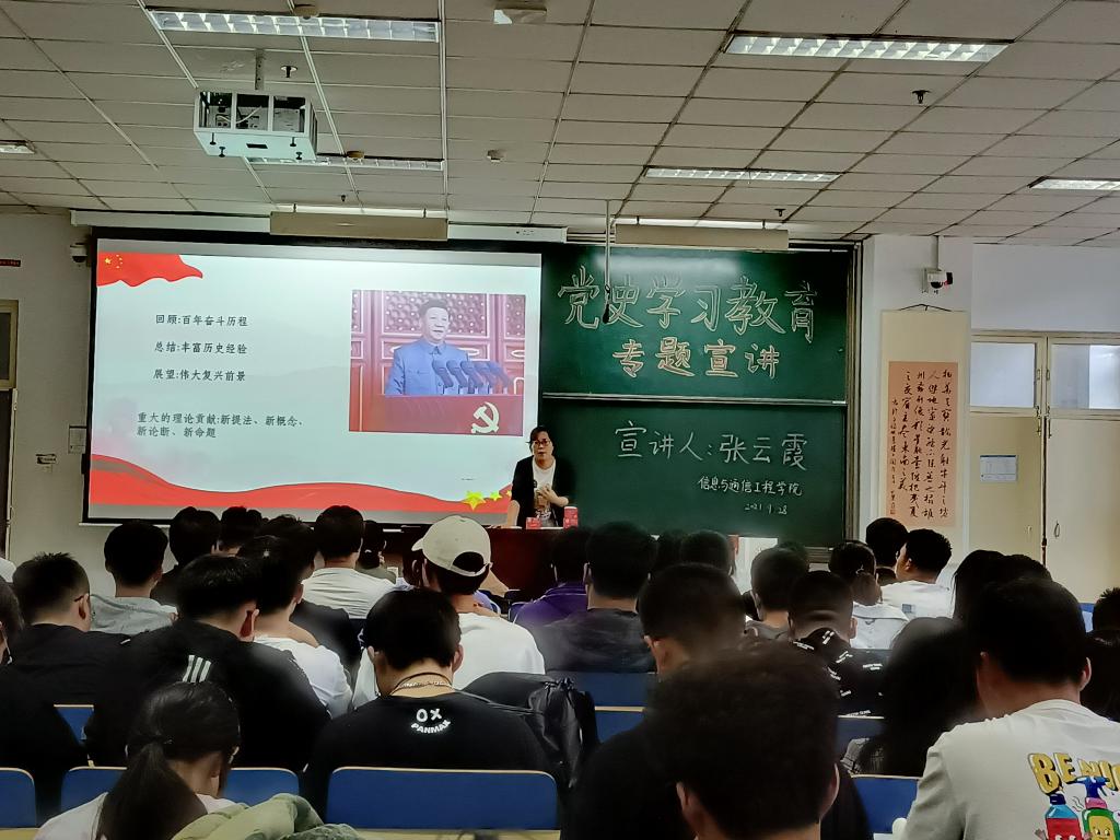 党委邀请中北大学党史学习教育宣讲团成员张云霞老师作题为《学习“七一”讲话精神 感悟百年大党人民情怀》的专题讲座,全体师生党员参加了本次学习。