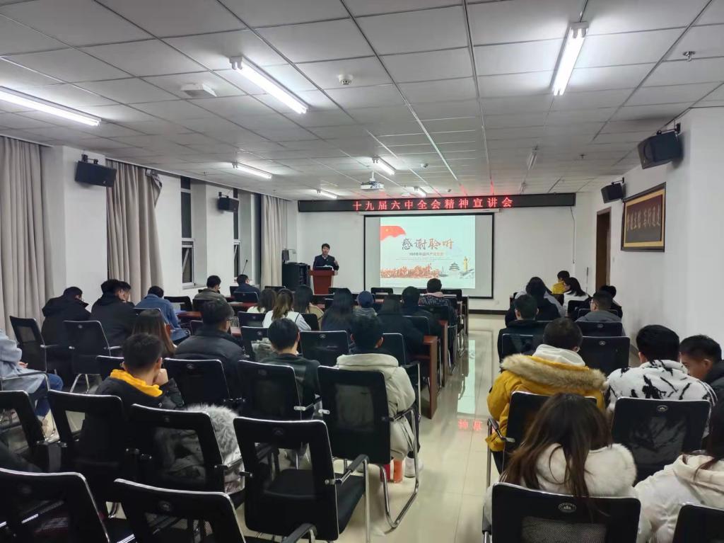 党的十九届六中全会是在重要历史关头召开的一次具有重大历史意义的会议。为深入学习贯彻党的十九届六中全会精神,光电信息科学与工程专业师生党支部全体党员于2021年11月29日下午在科学楼715会议室,邀请院党委书记曹凤才做了十九届六中全会精神宣讲报告。