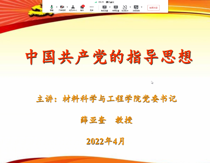 材料学院党委书记薛亚奎讲解了党在各个历史时期指导思想的背景、特征以及历史地位等,带领学员们深刻理解了党的指导思想的系统性和一脉相承性。