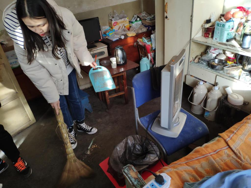 前期,我们了解了老人的基本情况,长期瘫痪患病在床生活不能自理,老人有一位在太原理工大学上学的女儿,三两天回家给父亲送饭照顾父亲。我们走进房间,一起和老人交谈聊天,给老人收拾屋子,热牛奶,当听到老人说:看到你们就像看到我自己姑娘一样,心里百般滋味。冰冷的屋子,卧床的老人,我们作为一名大学生,更应该去贡献自己的一份力量,哪怕是为老人煮饭、扫地、和老人聊天,都是一件快乐的事情。