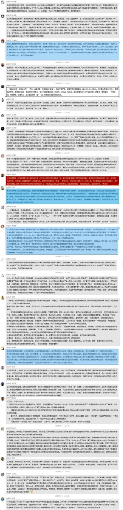 讨论结束后,支部书记张永玲老师号召全体学生党员,要深刻认识中国抗疫彰显的中国共产党领导和中国特色社会主义制度的显著优势,在今后学习生活中要增强“四个意识”、坚定“四个自信”、做到“两个维护”,发挥党员先锋模范作用,担负起中华民族伟大复兴的历史大任。