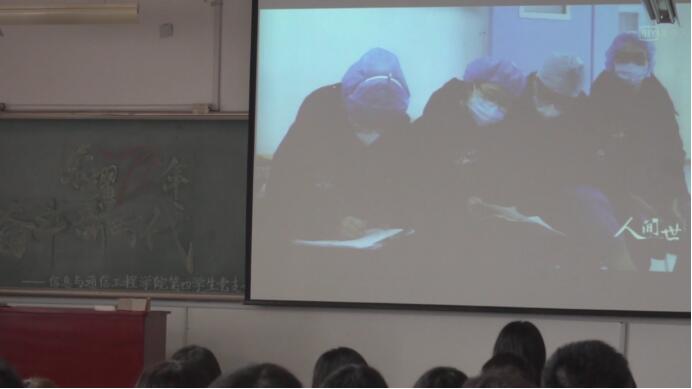 活动开始,我们首先组织支部成员共同观看了抗击疫情系列纪录片《人间世》。大家通过记者的镜头深入地了解疫情期间医护人员的抉择与考量。在重压之下,医护人员不怕牺牲,在国家最艰难的时刻挺身而出。虽然只短短一集,但是大家看完之后感受十分深刻,很多同学被医护人员所感动,不自知地留下滚烫的泪水。刘鹏杰、张勋栋和的赵炅同学积极发言,给大家分享了自己观看完这一集纪录片的感受,同时也分享了疫情期间自己力所能及的抗疫活动。同学们均表示,在以后的学习生活中会以这些抗疫英雄为榜样,继续努力奋斗。第二项,我们组织支部成员一起讨论疫情期间发生在我们身边的感人事迹。赵逢锦同学给我们讲述了自己的母亲作为一名医生在疫情期间的工作日常,体现了平凡岗位上的无私奉献的与坚守;李元浩同学分享了自己的姑父终究是“忠孝两难全”,强忍双亲辞世的悲痛依旧坚守一线的英雄事迹,令人动容,让我们不禁又一次感受到一名医生的信仰,舍小家为大家的伟大精神。第三项,李朝庆同学带领大家一起学习《习近平谈治国理政》第三卷,了解学习习总书记的治国理念以及党员干部以人为本的发展思想。最后,我们支部全体成员移步科学楼,摆成71的数字阵列,重温入党誓词,回顾初心;集体合唱《我和我的祖国》,庆祝祖国71周年生日快乐,祝愿祖国发展繁荣富强。