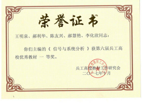 《信号与系统分析》荣获第六届兵工教材一等奖