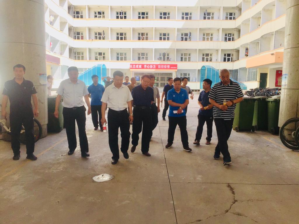 为落实暑假前全校正处级干部会议相关工作安排,全方位启动做好80周年校庆筹备工作,8月9日上午,校领导李忠人、沈兴全、雷锋斌、赵贵哲就暑期校园维修改造工作进行全面检查指导。党办校办、后勤管理处、财务处、基本建设处、安全保卫处和信息化建设与管理处等相关部门负责人参加了检查。